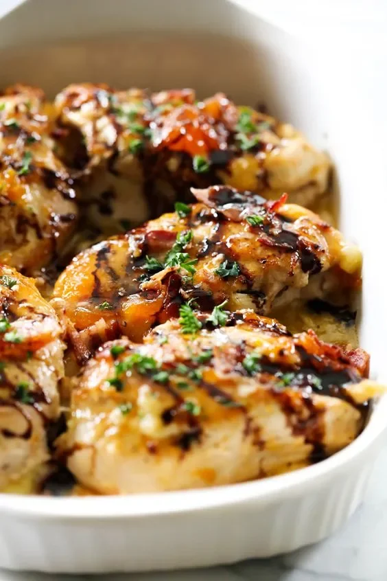 This Apricot Chicken with Brie Cheese and Bacon is an irresistible combination of sweet, tangy, and savory flavors. The creamy brie, smoky bacon, and bright apricot balsamic come together beautifully with juicy chicken — a show-stopping main dish that’s simple to prepare.