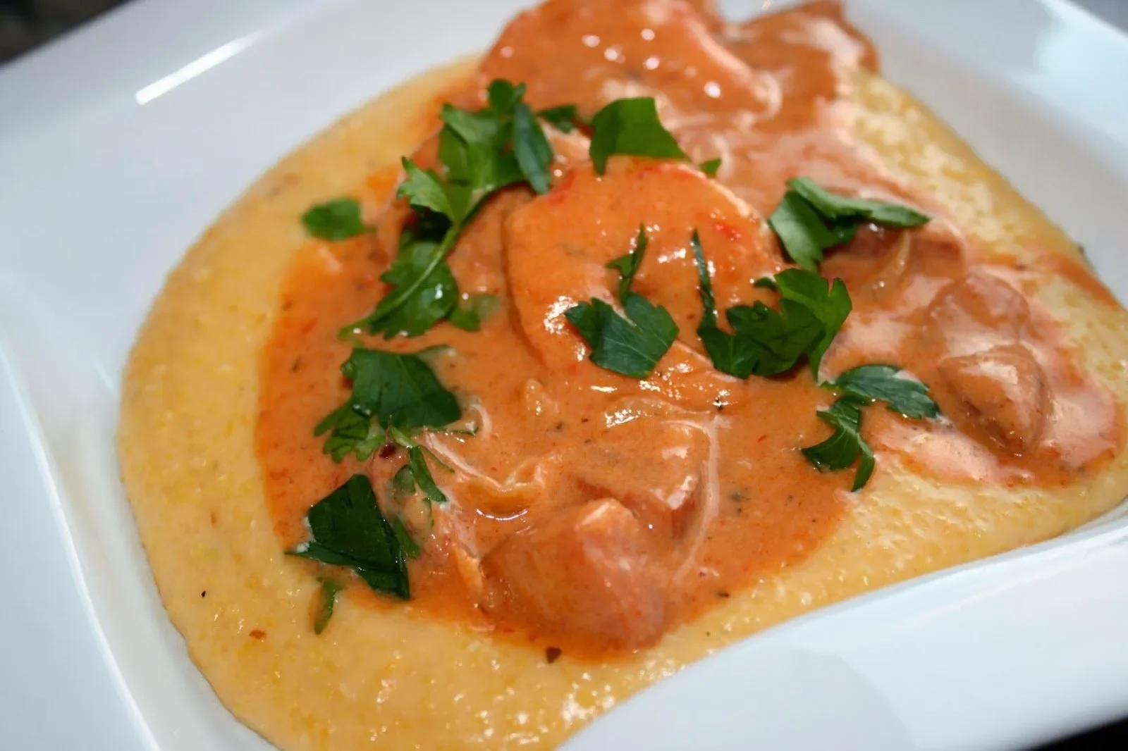 A bold, flavorful twist on a Southern classic, this dish combines spicy Baklouti-infused shrimp and andouille sausage with creamy, cheesy grits. The homemade shrimp stock and rich sauce bring it all together for a satisfying, comforting meal perfect for any occasion.