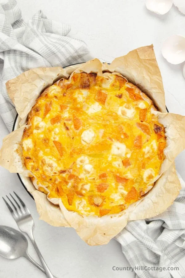 A hearty, nutritious quiche loaded with tender pumpkin, kale, and mushrooms — no crust needed for a lighter, gluten-free option.