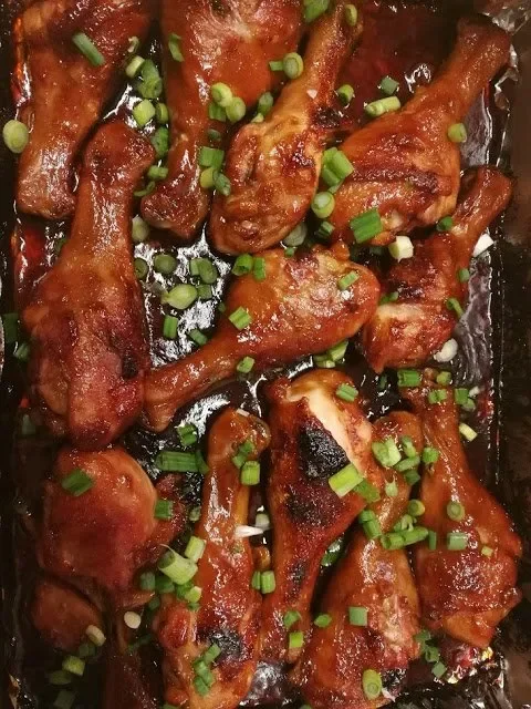 Brush with reserved marinade just as the chicken comes out of the oven. Sprinkle with sliced scallions for a fresh finish.