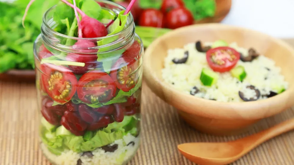 When ready to eat, shake the jar vigorously to coat the salad with dressing. Open and enjoy!