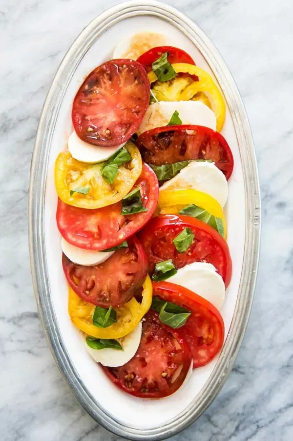 Bright, colorful, and fresh, this Heirloom Tomato Caprese Salad highlights the natural sweetness of ripe tomatoes paired with creamy mozzarella and fragrant basil. Drizzled with Tuscan Herb olive oil and traditional balsamic vinegar, it’s a beautiful starter or light meal.