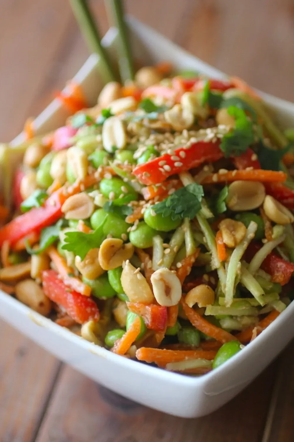 A fresh, crunchy twist on classic cole slaw with an Asian flair. This salad uses natural sweetness from lemongrass mint balsamic and a creamy Greek yogurt dressing instead of mayonnaise, making it light, vibrant, and perfect for warm days or as a colorful side dish.