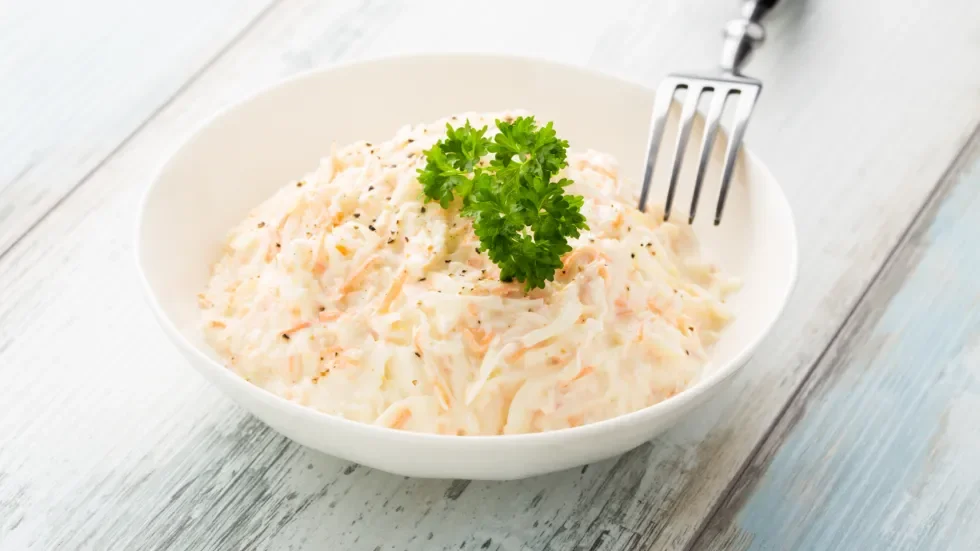 A light and refreshing twist on classic coleslaw with tangy Greek yogurt and fragrant dill olive oil. Perfect as a side for summer barbecues or sandwiches.
